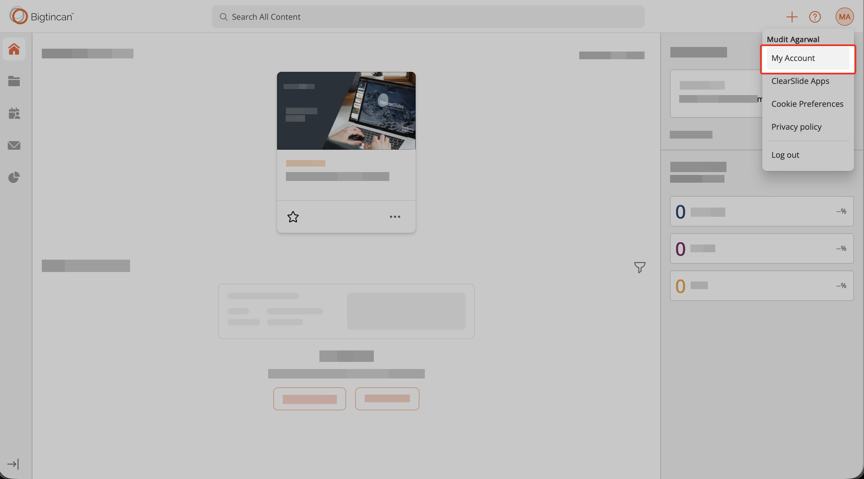 Open your User Settings by selecting the circle with your initials in the top-right.