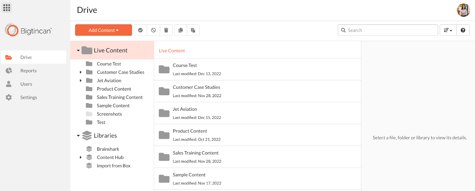 Drive for Bigtincan serves as a content library accessible across all platforms so your users can seamlessly utilize the uploaded files. Drive is a new centralized CMS for enhanced platform-level content management.