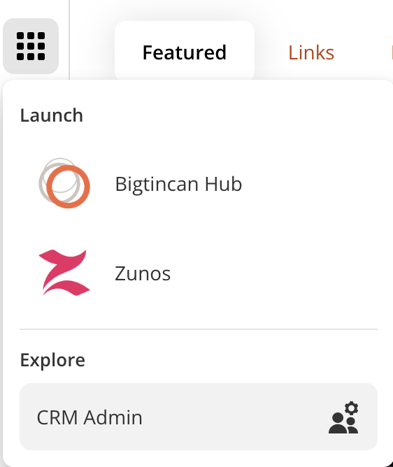 - You will then navigate to the 9 Dots on the top left side and select the CRM Admin button