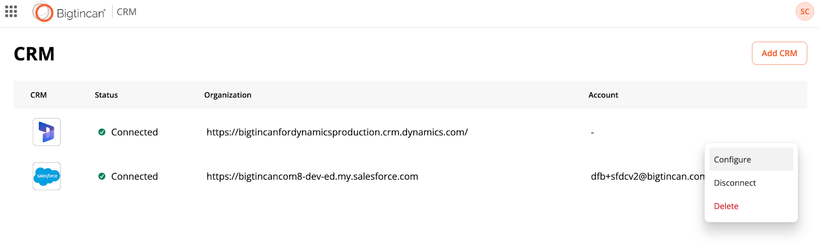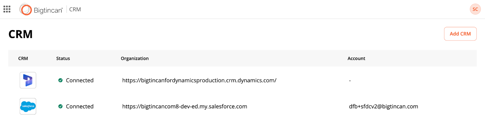 - Start the Dynamics CRM integration by signing into your Bigtincan application.