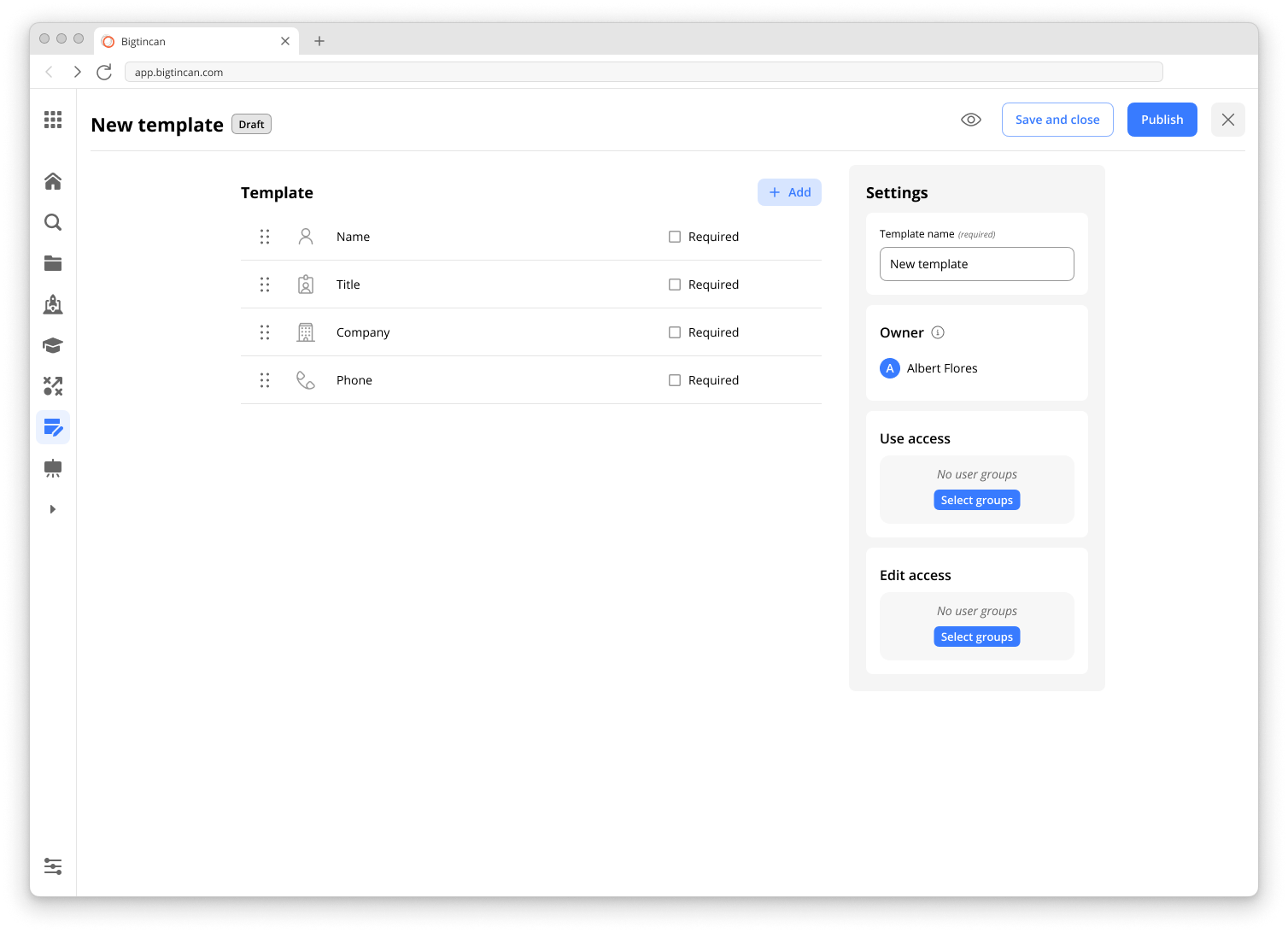 Published: Published Forms are available for use in Link Shares or Digital Sales Rooms to users who have been granted permission.