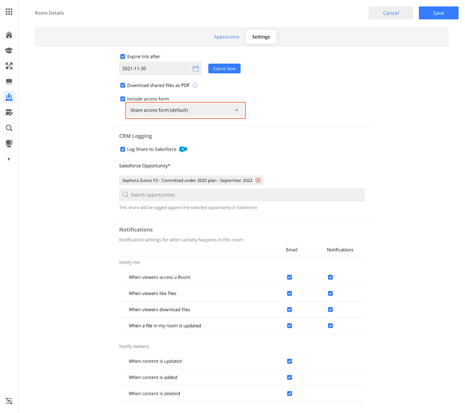 Digital Sales Room Settings