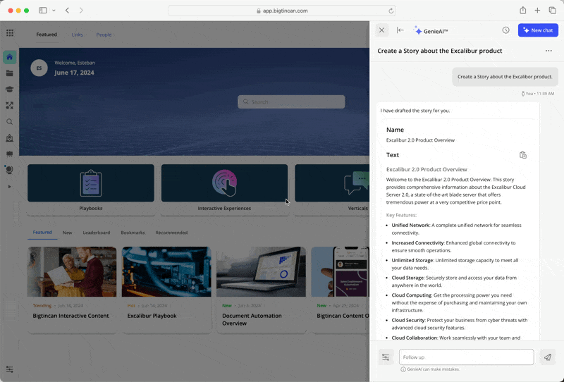 - Genie responds with a summary of the file in focus in the File Viewer in Hub.